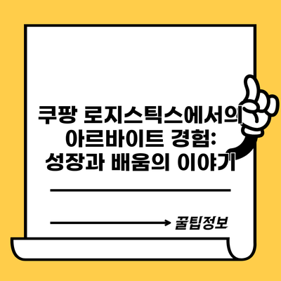 A1: 쿠팡 로지스틱스에서의 아르바이트는 다양한 업무와 배움을 통해 개인적으로 많은 성장을 할 수 있는 기회였어요.