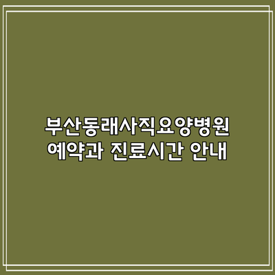 A1: 부산동래사직요양병원은 전화 또는 온라인 시스템을 통해 예약할 수 있습니다.